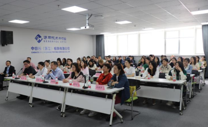 5月11日上午,通用技術浙江中紡標與雅瑩集團下屬雅瑩書院共同開展功能性紡織品研學活動。雅瑩集團面料開發(fā)、面料采購等相關部門共計53人參加了此次活動,浙江中紡標培訓老師做了關于功能性紡織品檢驗標準、實驗環(huán)境以及產品特性等相關知識培訓。浙江中紡標總經理助理胡凱通過現(xiàn)場講解,幫助學員更清晰的了解功能性相關檢測知識。